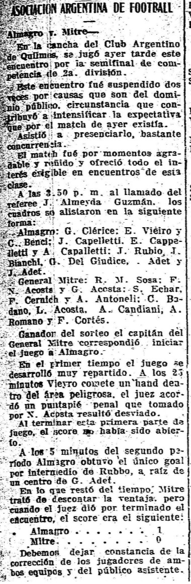 1917 – 2da Division – Copa Competencia – Gral Mitre vs Almagro – Diario La Epoca