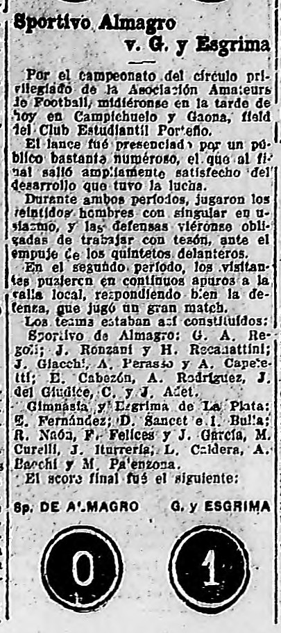 Previous Image Next Image 1921 – Primera Division – Sportivo Almagro vs Gimnasia y Esgrima LP – Diario Critica