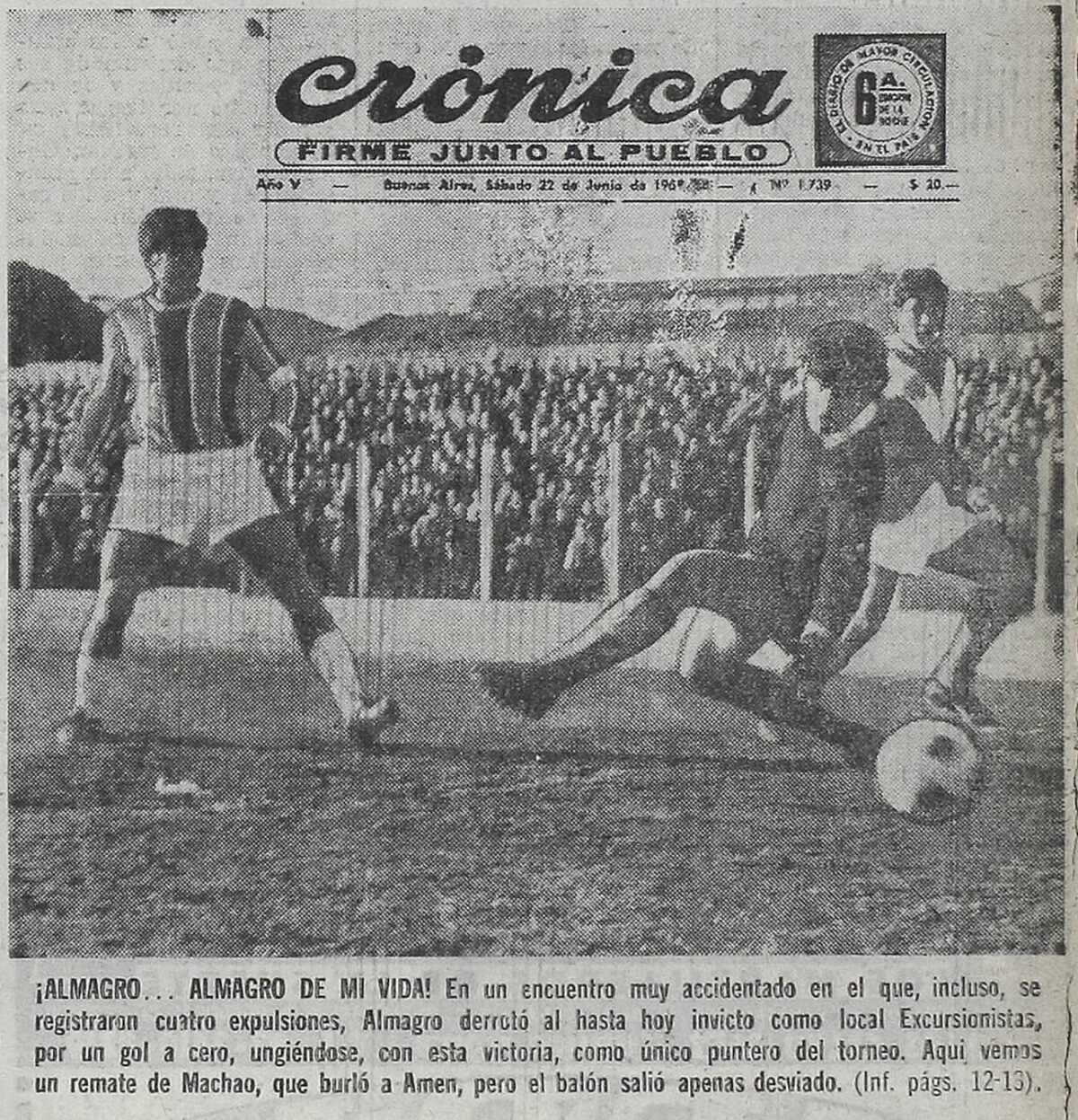 Previous Image Next Image 1968 – Primera B – Excursionistas vs Almagro – Foto Tapa – Diario Cronica 6ta
