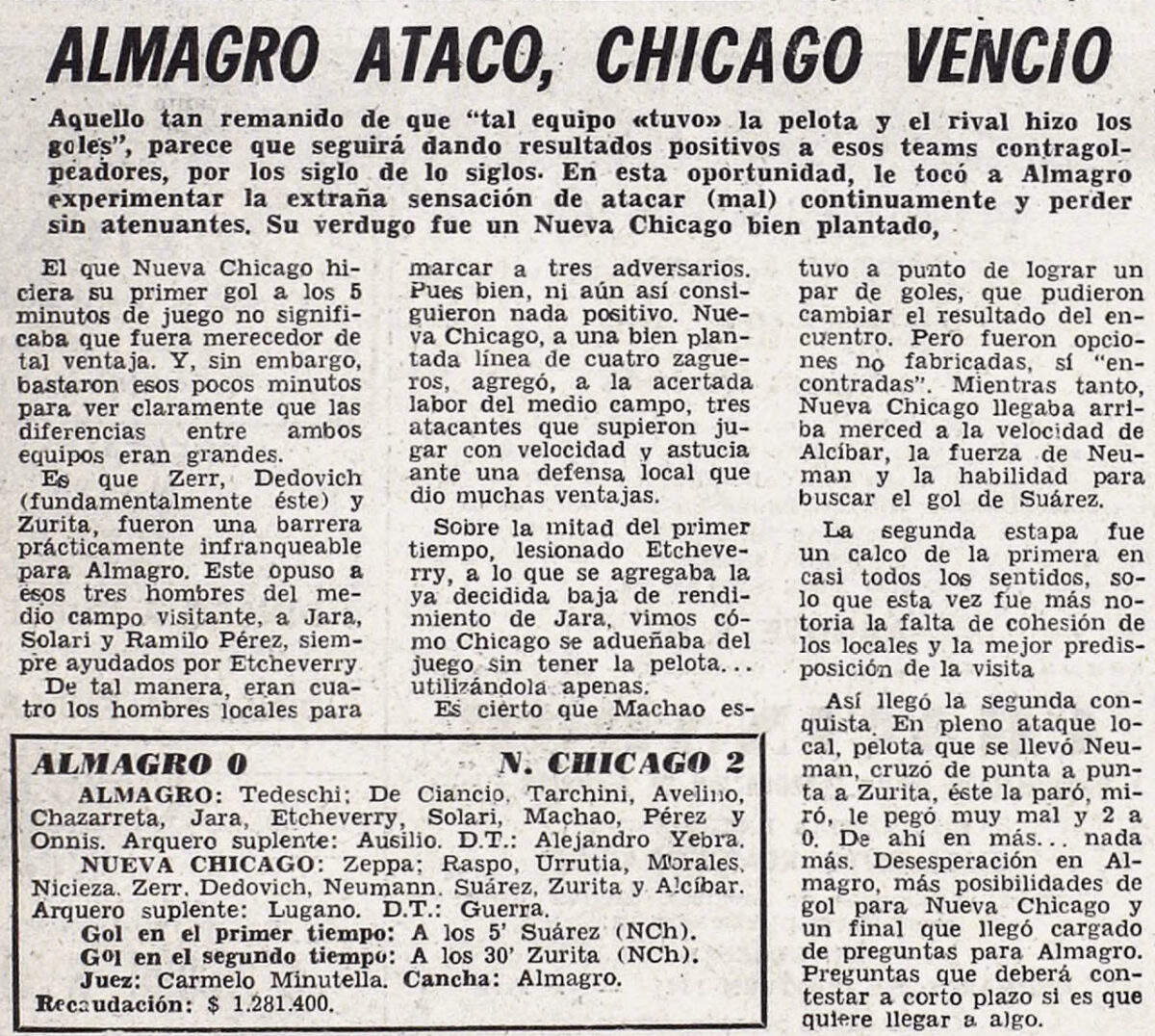 Previous Image Next Image 1968 – Primera B – Reclasificatorio – Almagro vs Nueva Chicago – Diario Cronica