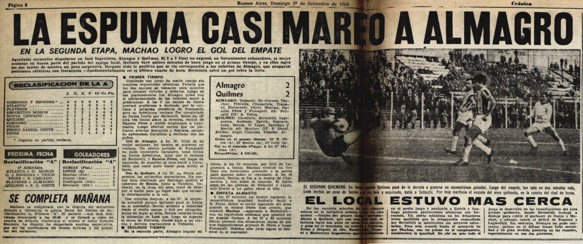 Previous Image Next Image 1968 – Primera B – Reclasificatorio – Almagro vs Quilmes – Diario Cronica 6ta