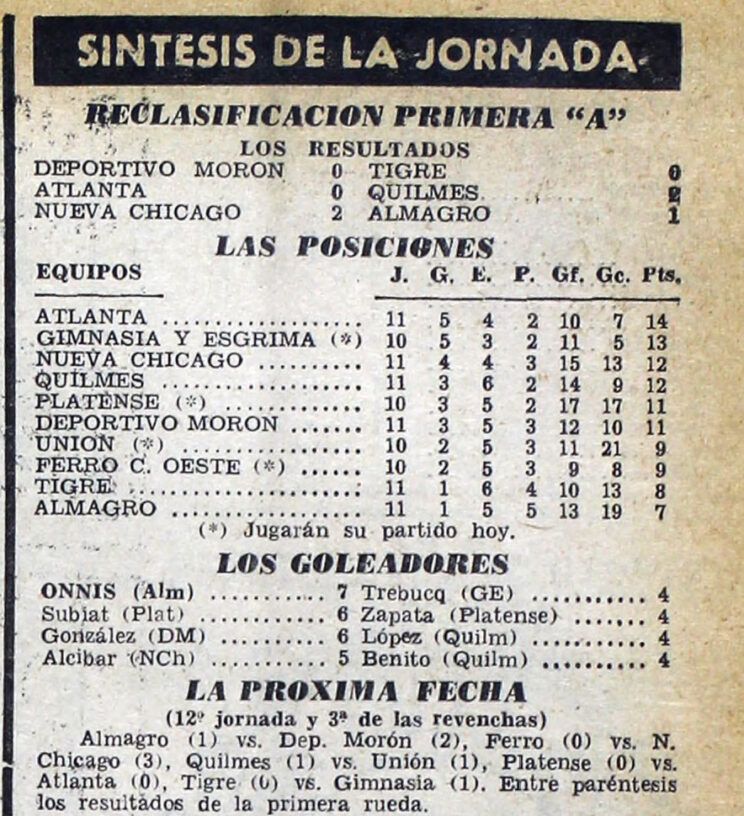 1968 – Primera B – Reclasificatorio – Fecha 11 – Tabla de posiciones – Diario Cronica