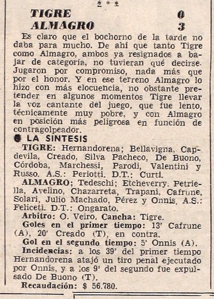 Previous Image Next Image 1968 – Primera B – Reclasificatorio – Tigre vs Almagro – Diario Cronica 6ta