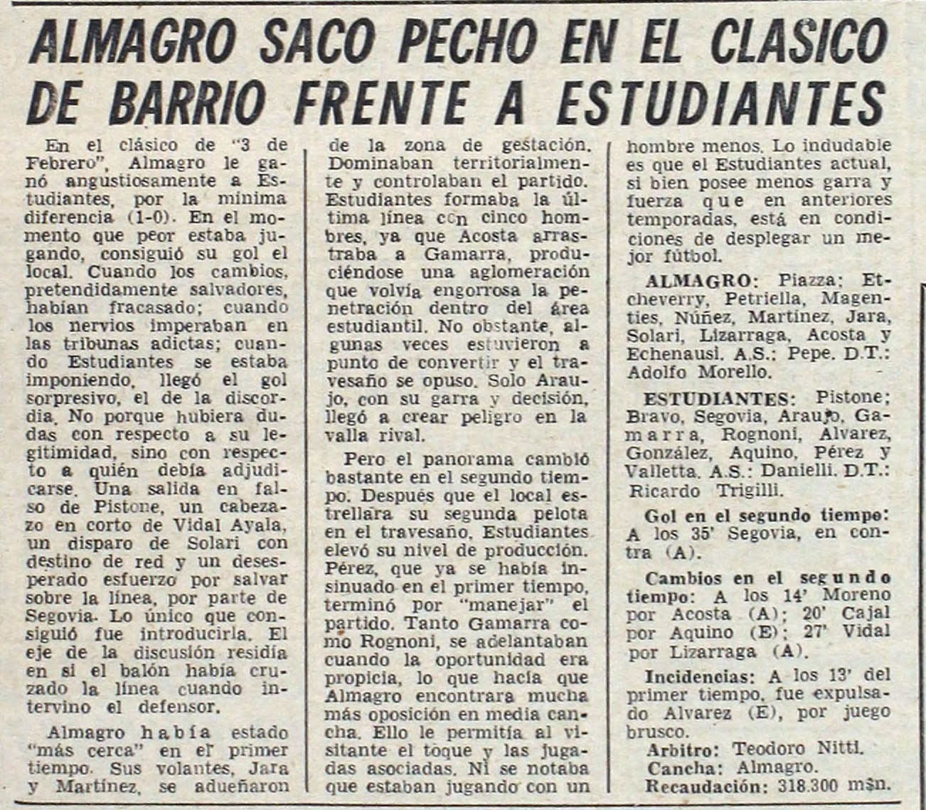 1970 – Primera B – Almagro vs Estudiantes BA – Diario Cronica