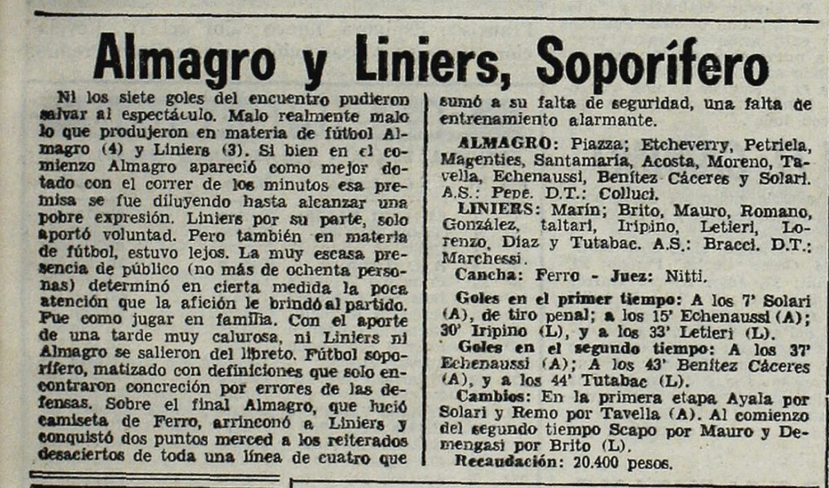 Previous Image Next Image 1970 – Primera B – Reclasificacion B-C – Almagro vs Liniers – Diario Cronica