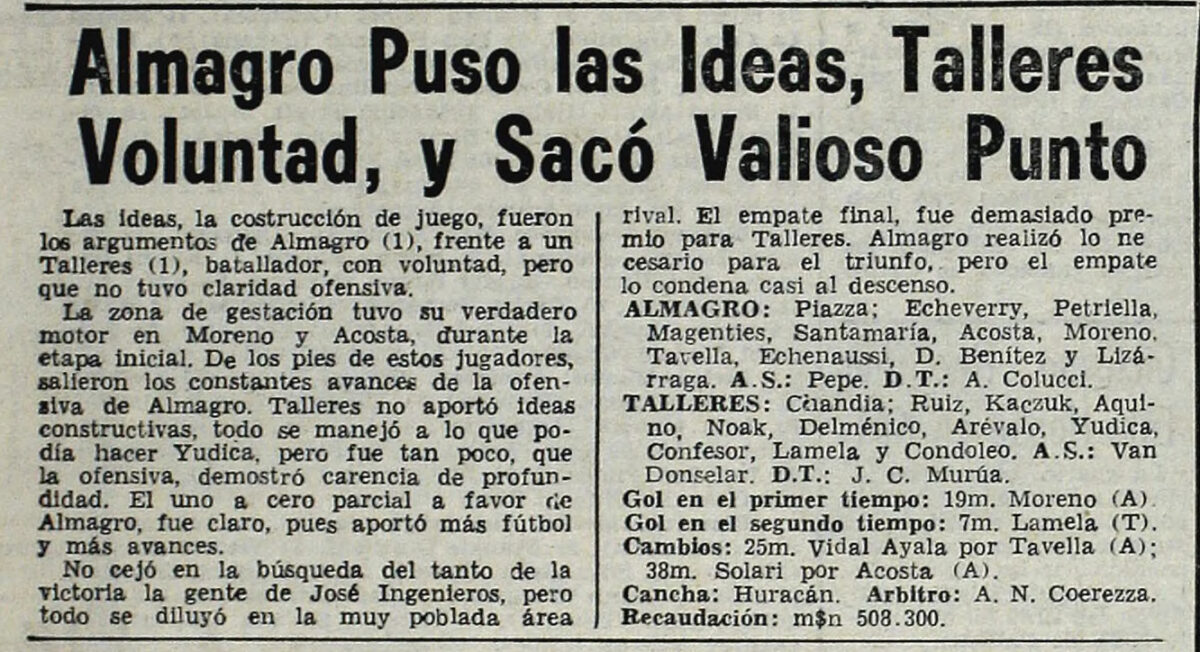 Previous Image Next Image 1970 – Primera B – Reclasificacion B-C – Almagro vs Talleres RE – Diario Cronica