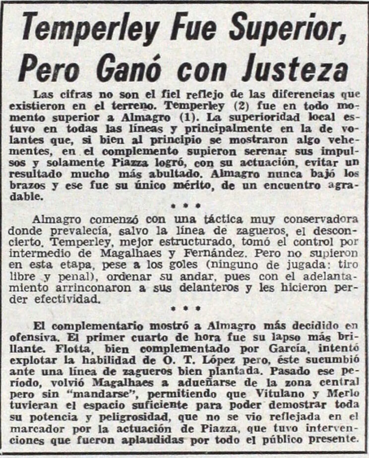 1972 – Primera B – Temperley vs Almagro – Nota – Diario Cronica