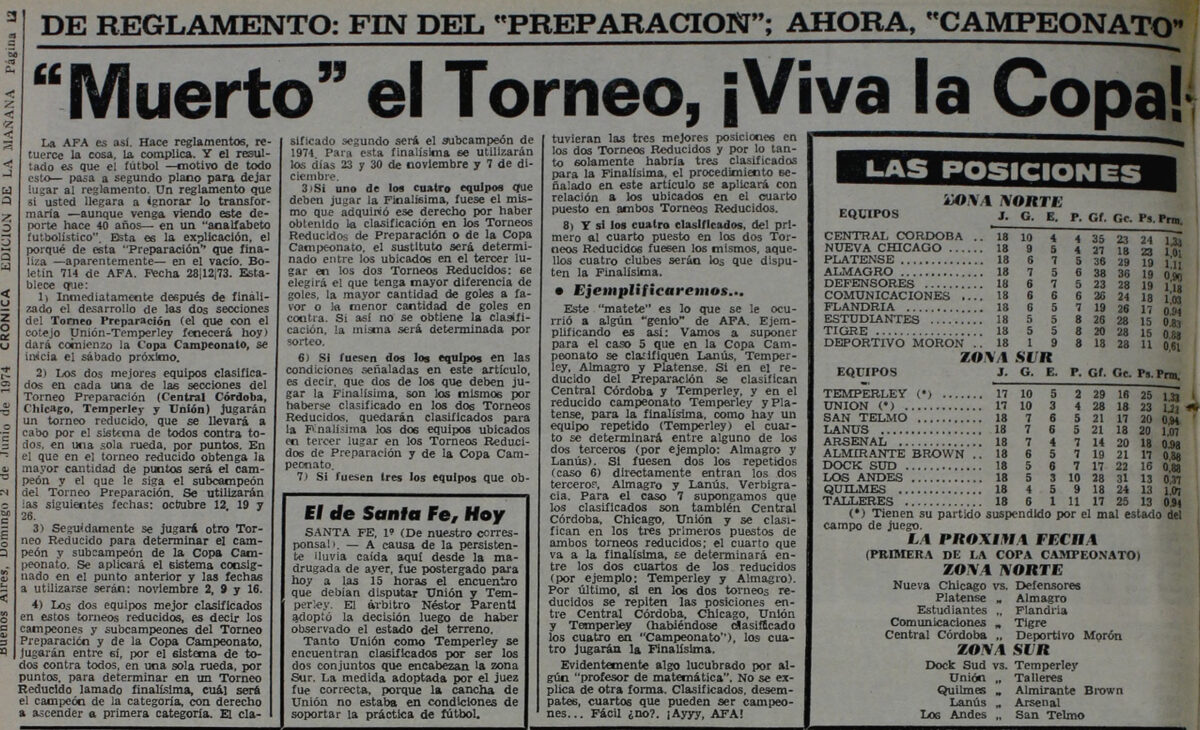 Previous Image Next Image 1974 – Primera B – Fecha 18 – Tabla de Posiciones – Reglamento – Diario Cronica