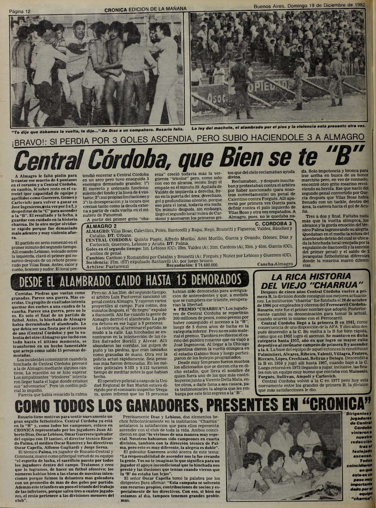 Previous Image Next Image 1982 – Primera C – Final – Almagro vs Central Cordoba Rosario – Diario Cronica Domingo