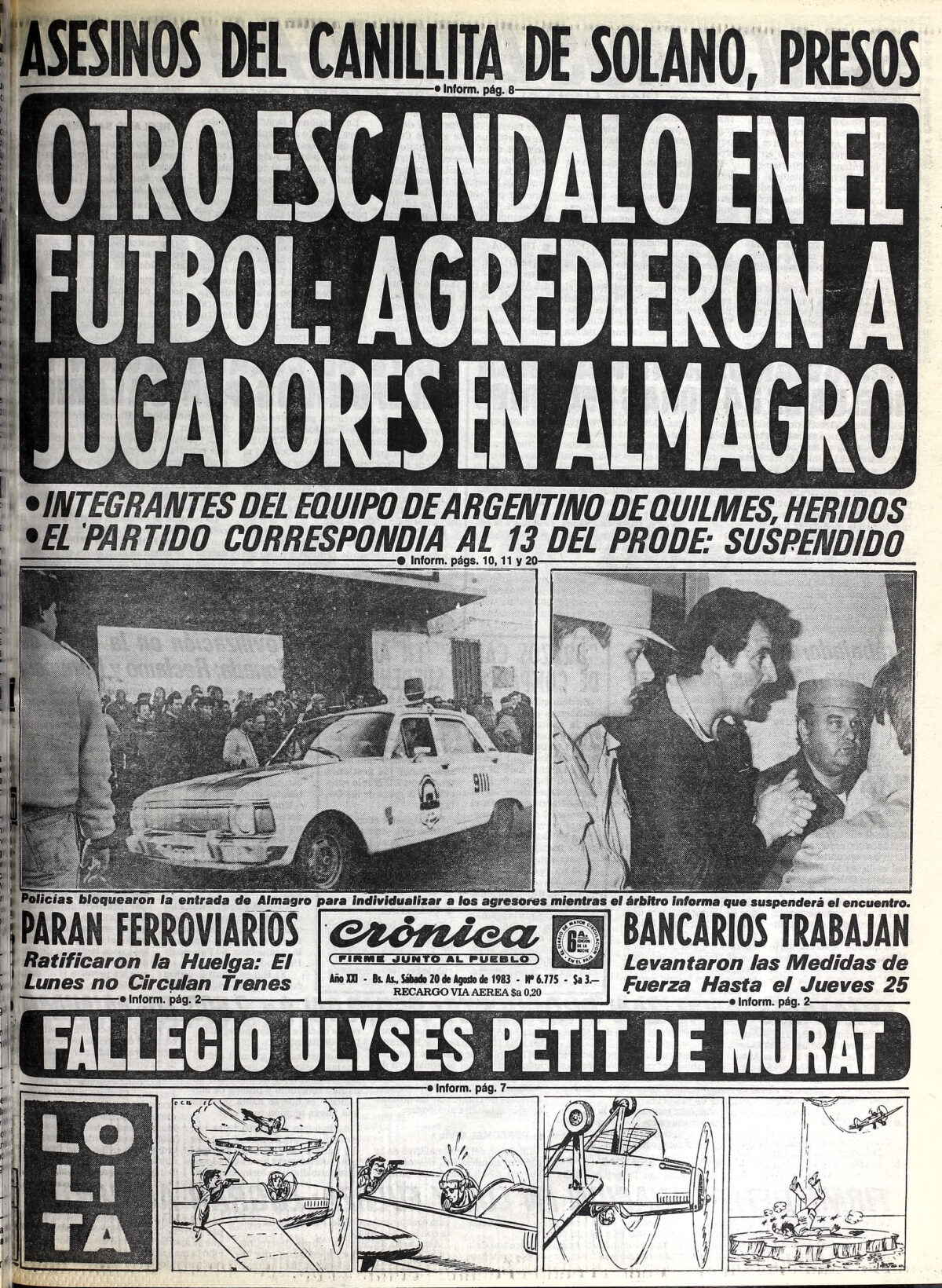 Previous Image Next Image 1983 – Primera C – Almagro vs Argentinos de Quilmes – Incidentes – Tapa Diario Cronica 6ta