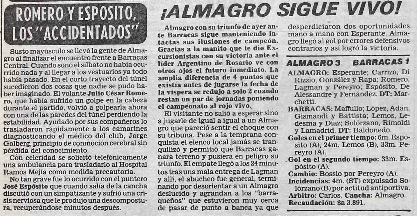 1983 – Primera C – Almagro vs Barracas Central – Diario Cronica