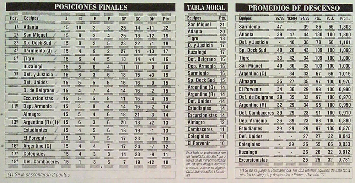 Previous Image Next Image 1994-95 – Primera B – Fecha 15 Clausura – Tabla de Posiciones – Revista Solo Futbol