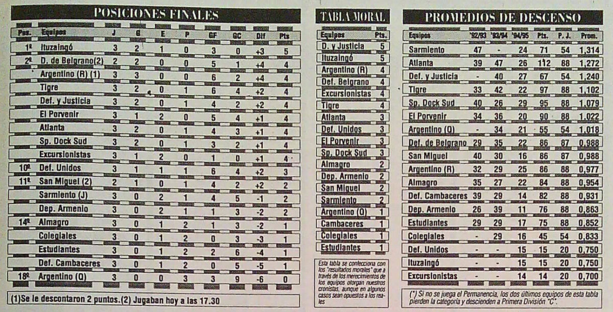 Previous Image Next Image 1994-95 – Primera B – Fecha 3 Clausura – Tabla de Posiciones – Revista Solo Futbol