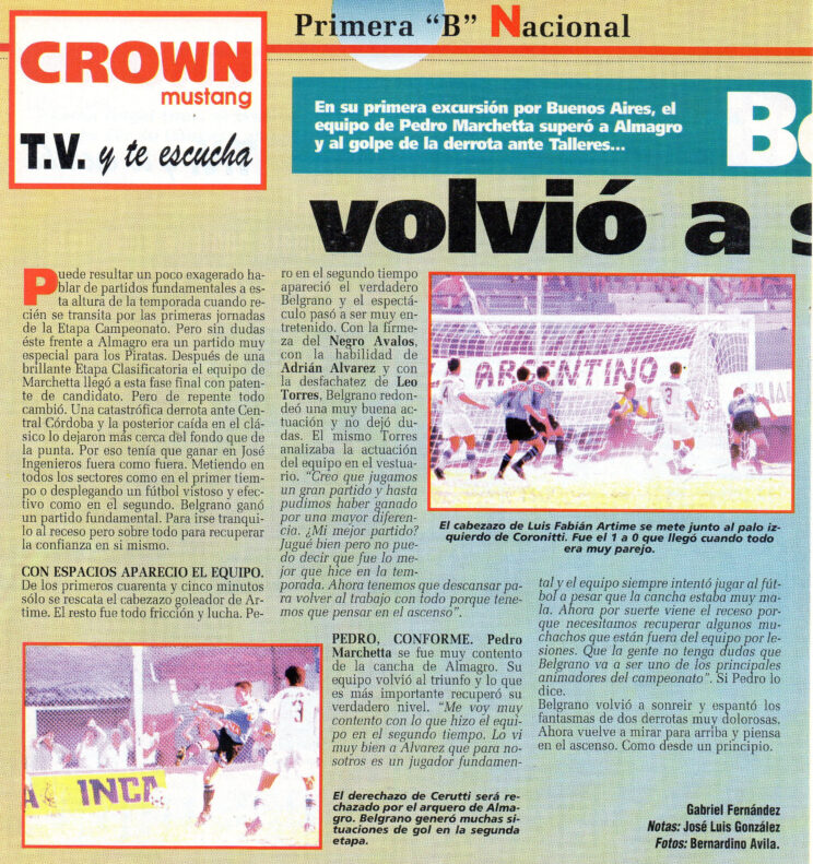 Previous Image Next Image 1996-97 – Nacional B – Campeonato – Almagro vs Belgrano CBA P1 – Revista Solo Futbol