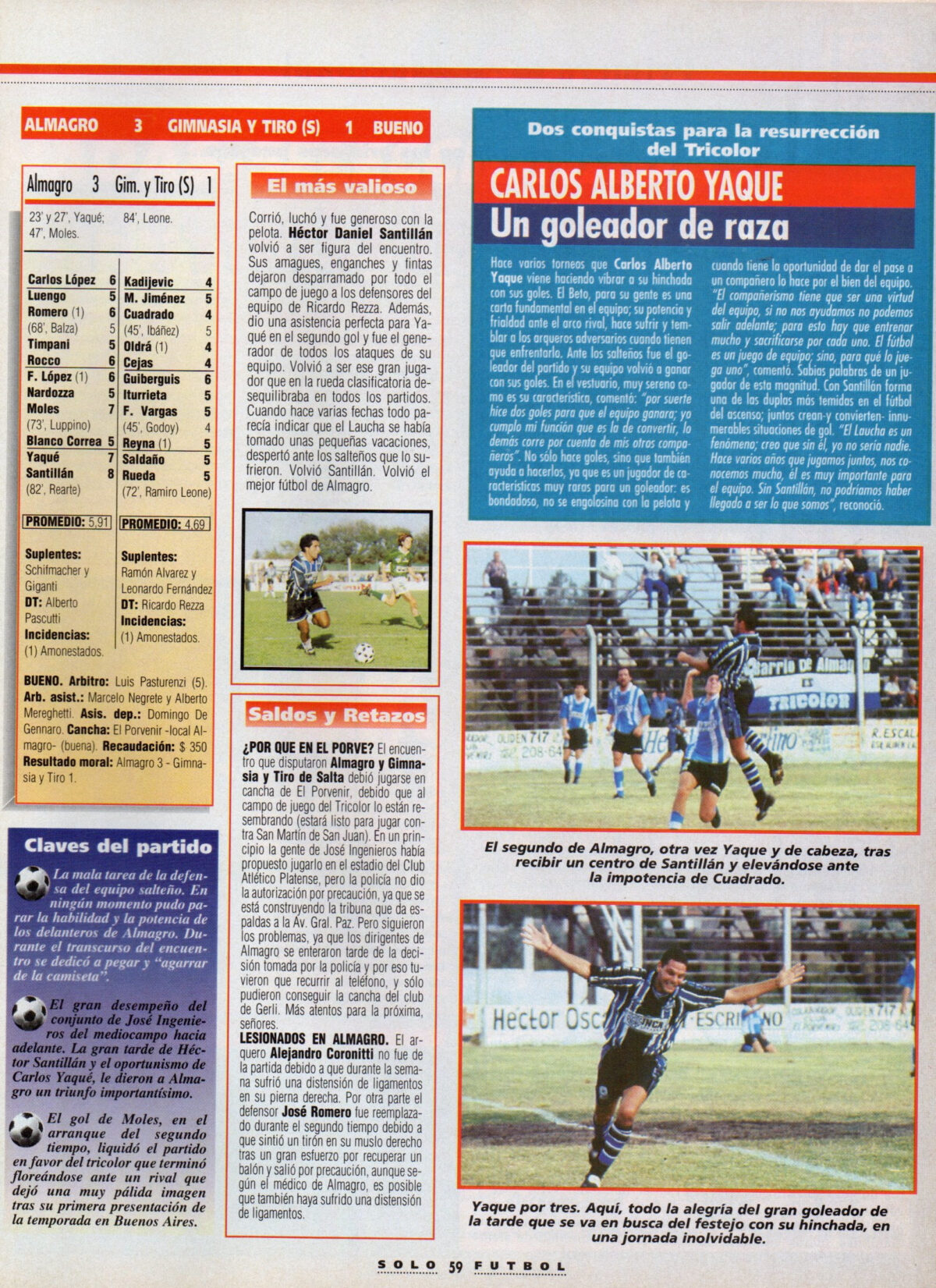 Previous Image Next Image 1996-97 – Nacional B – Campeonato – Almagro vs Gimnasia y Tiro Salta P2 – Revista Solo Futbol